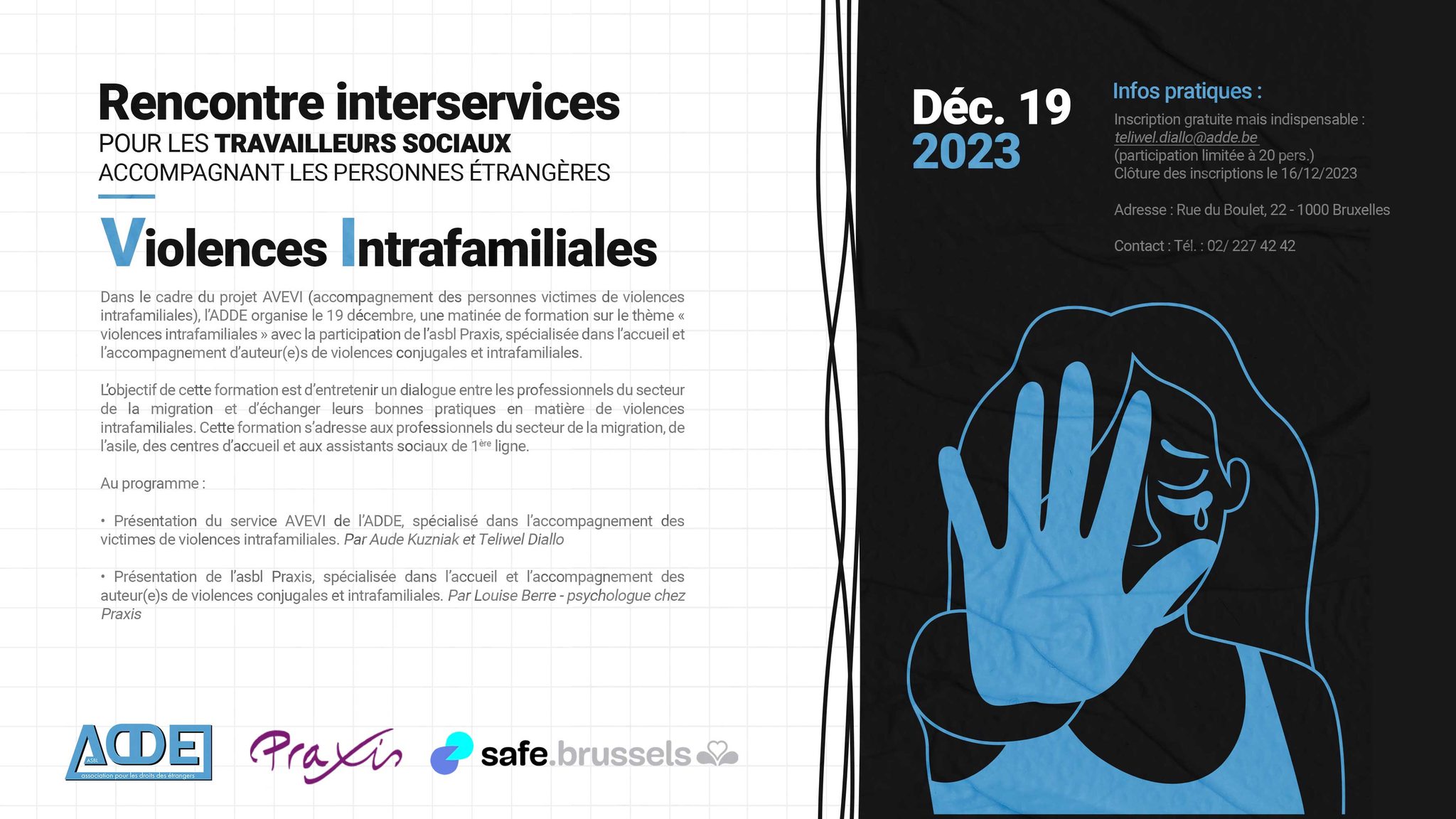 Cette année notre formation se déroulera exclusivement en présentiel: Maison des Associations Internationales (MAI) n° 40, Rue Washington – 1050 Bruxelles